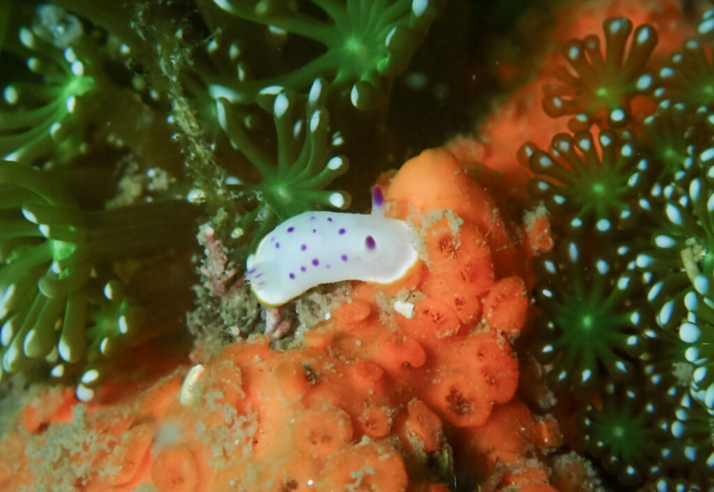 見つけるとやっぱり嬉しい、”クリヤイロウミウシ”をアワサンゴと一緒に!