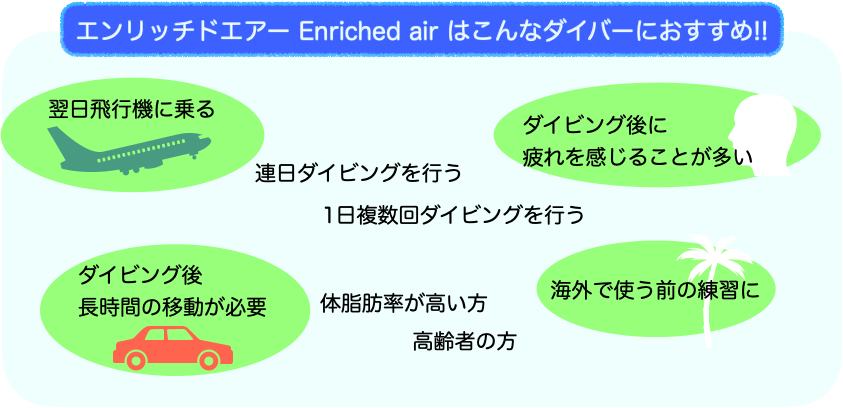 安全に使用する為にエンリッチドエアーダイバーの講習を受けて下さい。